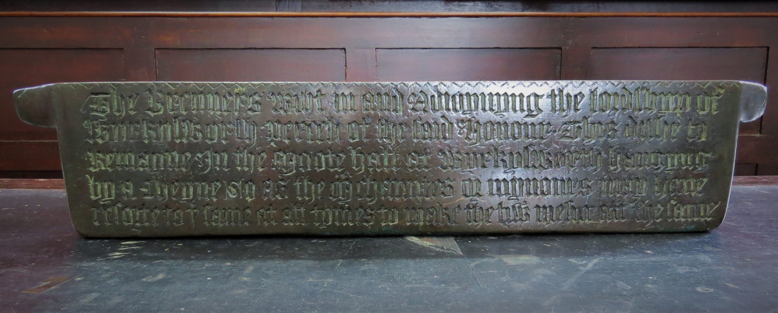 The valuable antiquity at the heart of the exhibition belongs to the ancient inheritance of the Duchy of Lancaster. It was used for centuries as a means of testing the volume of lead miners’ wooden dishes against this regulation model. The dish is incredibly heavy even when empty and can contain approximately 85 lbs of lead ore when full.